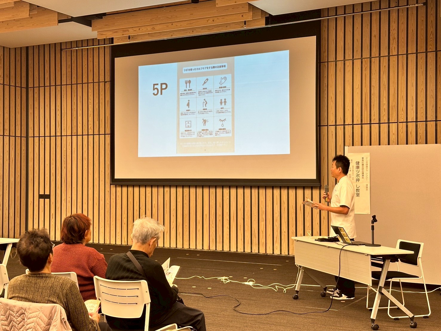 私からは、肩こりや腰痛など、日常生活で感じやすい不調に効果的なツボの位置や押し方について、わかりやすく丁寧な指導を心掛けました。参加者は実際に自分の体を使ってツボを探し、押す感覚を体験しながら熱心に学んでいました。「ここを押すと本当に軽くなる」「家でも続けてみたい」といった声が多く聞かれ、会場のあちこちで笑顔と感嘆の声が上がっていました。